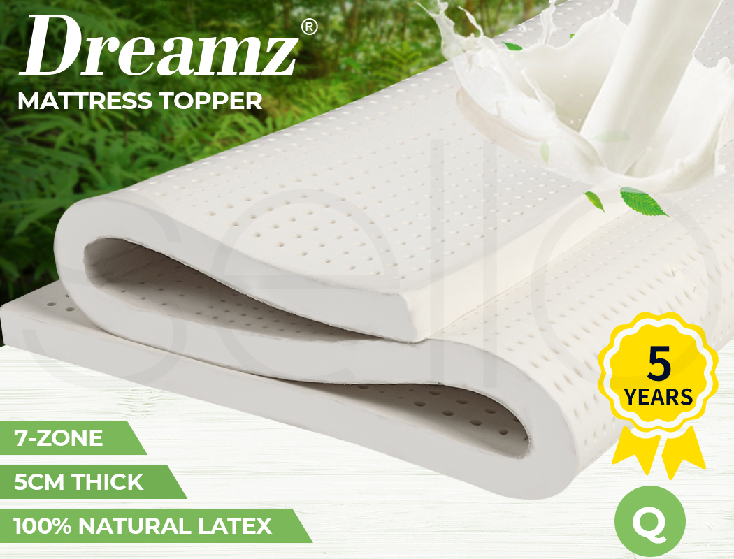Dreamz Latex Mattress Topper Queen Bed Underlay Natural Foam 7 Zone Cover 5cm