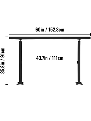 Adaptable for 0-5 StepsDesigned to accommodate 1-5 steps and level surfaces, this stair railing kit provides reliable support, extending 37.4" (95 cm) from the ground to the highest step.Specifications